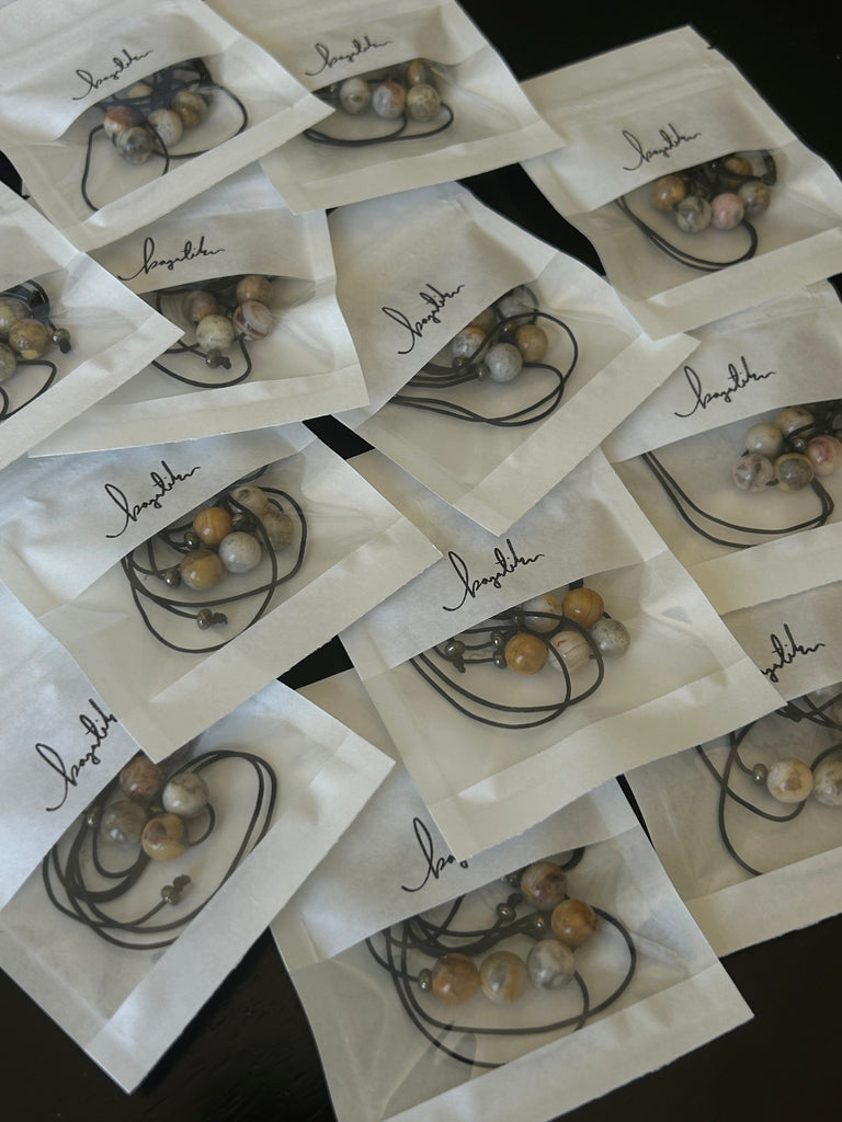 The Beaded Collection contains many different styles all handmade in Los Angeles, sourced locally and knotted with nylon string for extra adjustability. Small quantities made of each style made, some containing pyrite beads.